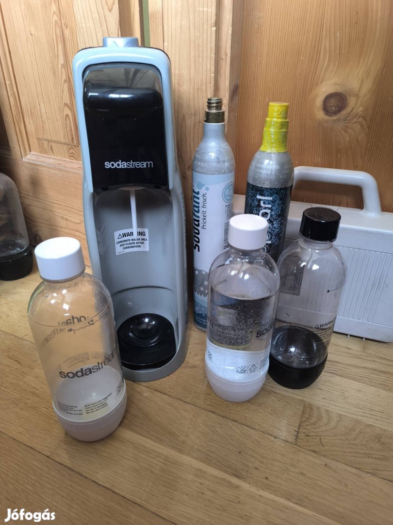 3 db Sodastream vizespalackkal és 2 db csereszabatos CO2 patronnal.
