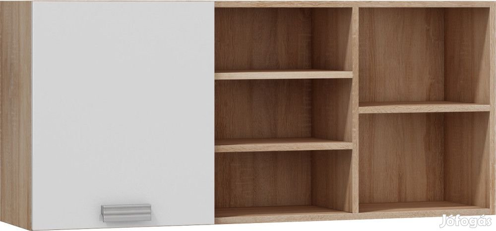 Falra szerelhető könyvespolc 1 ajtóval, az ajtó mögött polccal és nyitott polcokkal, világos sonoma tölgy és fényes fehér színben. További információkért kattintson ide: