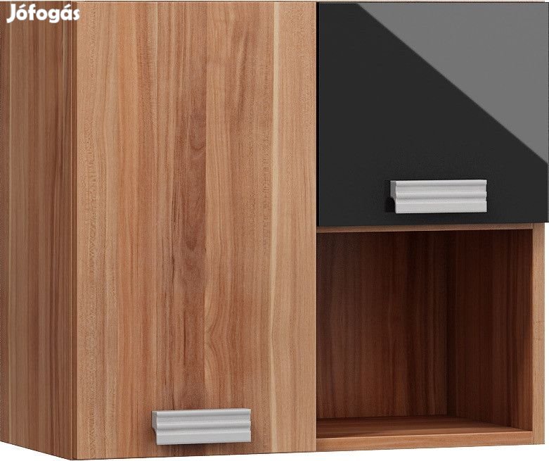 Falra szerelhető szekrény 2 ajtóval, az ajtó mögött polccal és nyitott polccal, szilva és fényes fekete színben. További információkért kattintson ide: