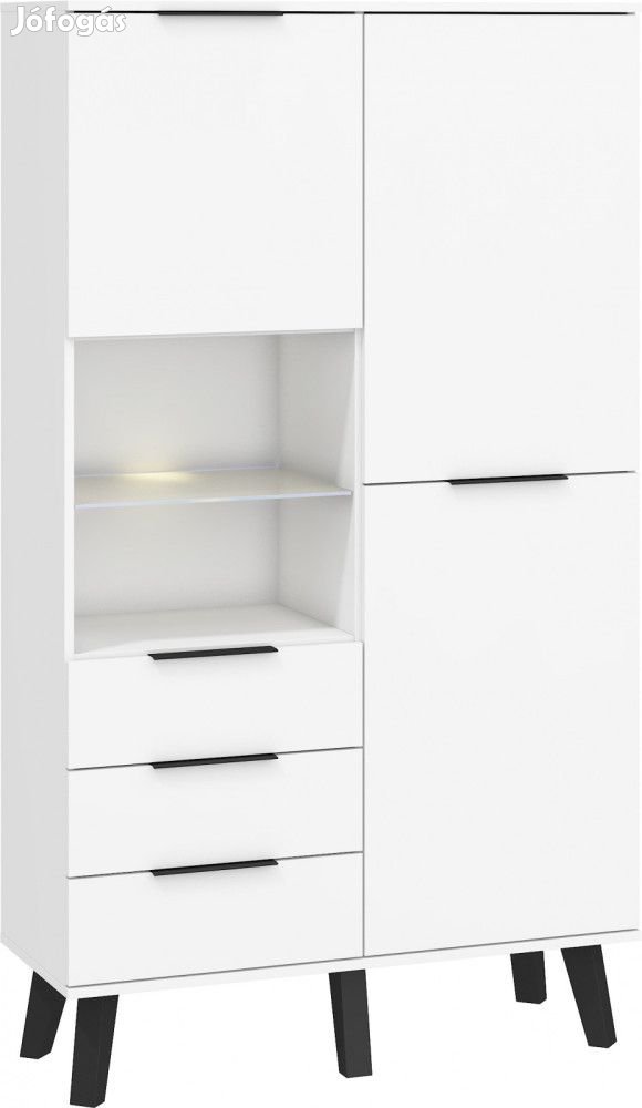 Gardróbszekrény 2 ajtóval, 3 fiókkal, belül polcokkal és vállfatartó rúddal, valamint nyitott üvegpolccal, fehér és fényes fehér színben. További információkért kattintson ide: