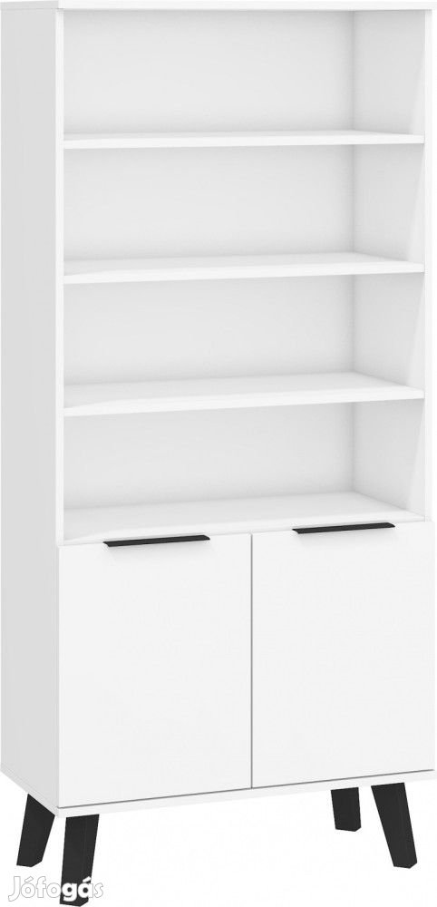 Könyvespolc 2 ajtóval, az ajtók mögött polcokkal és nyitott polcokkal, fehér és fényes fehér színben. További információkért kattintson ide: