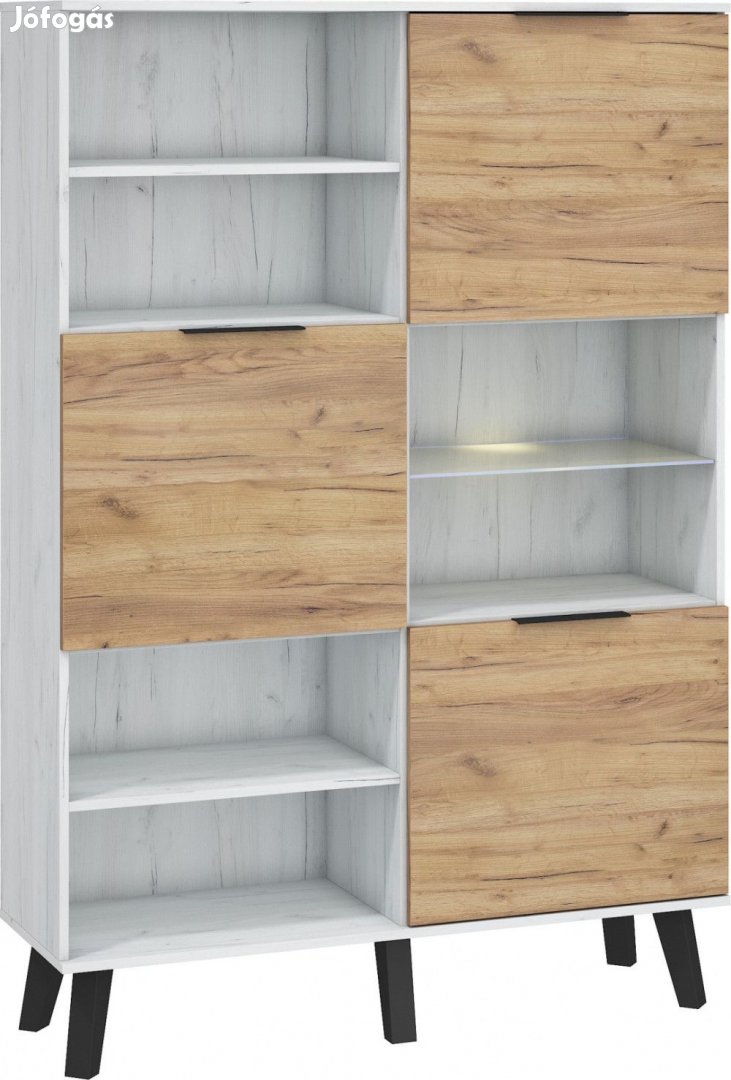 Könyvespolc 3 ajtóval, az ajtók mögött polcokkal és nyitott polcokkal és üvegpolccal, fehér tölgy és arany tölgy színben. További információkért kattintson ide: