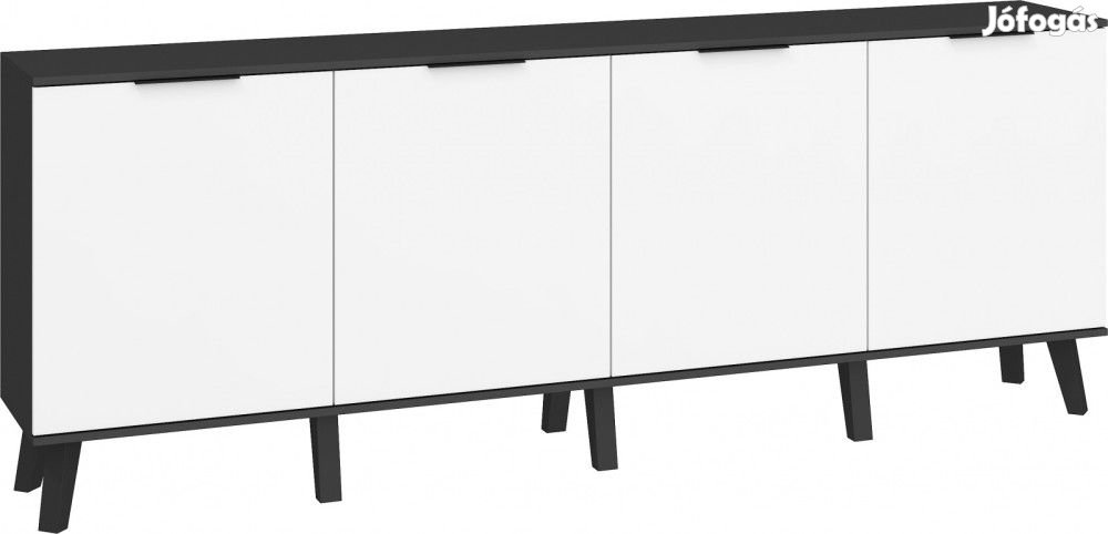 Komód 4 ajtóval, az ajtók mögött polcokkal, fekete és fényes fehér színben. További információkért kattintson ide: