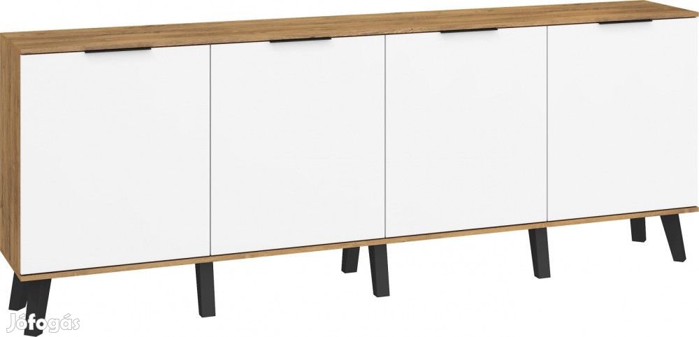 Komód 4 ajtóval, az ajtók mögött polcokkal, burgundy tölgy és fényes fehér színben. További információkért kattintson ide:
