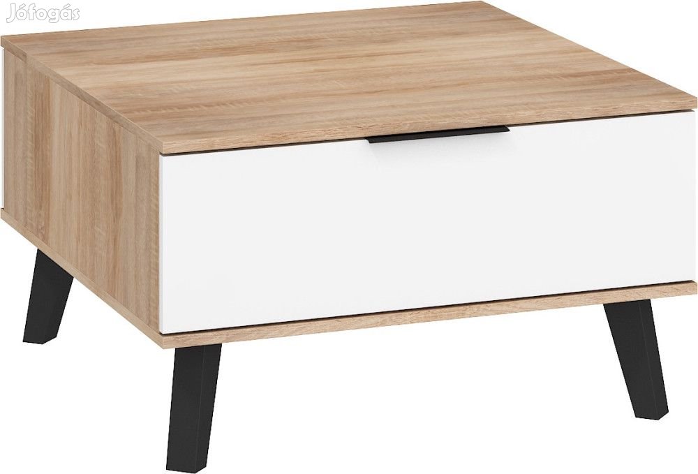 Dohányzóasztal 2 lenyíló ajtóval és négyzet alakú szögletes asztallappal, világos sonoma tölgy és fényes fehér színben. További információkért kattintson ide: