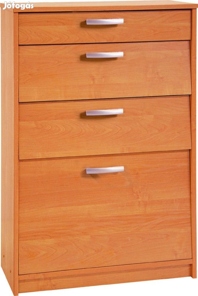 Cipősszekrény 3 lenyíló ajtóval, az alsó ajtón belül dupla cipőtartóval és felül 1 fiókkal, éger színben. További információkért kattintson ide: