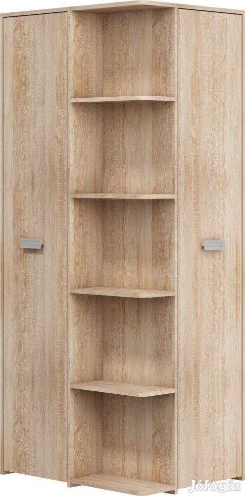 Sarok gardróbszekrény egyik oldalon alul-felül polccal és vállfatartó rúddal, másik oldalon végig polcokkal és nyitott polcokkal, világos sonoma tölgy színben. További információkért kattintson ide: