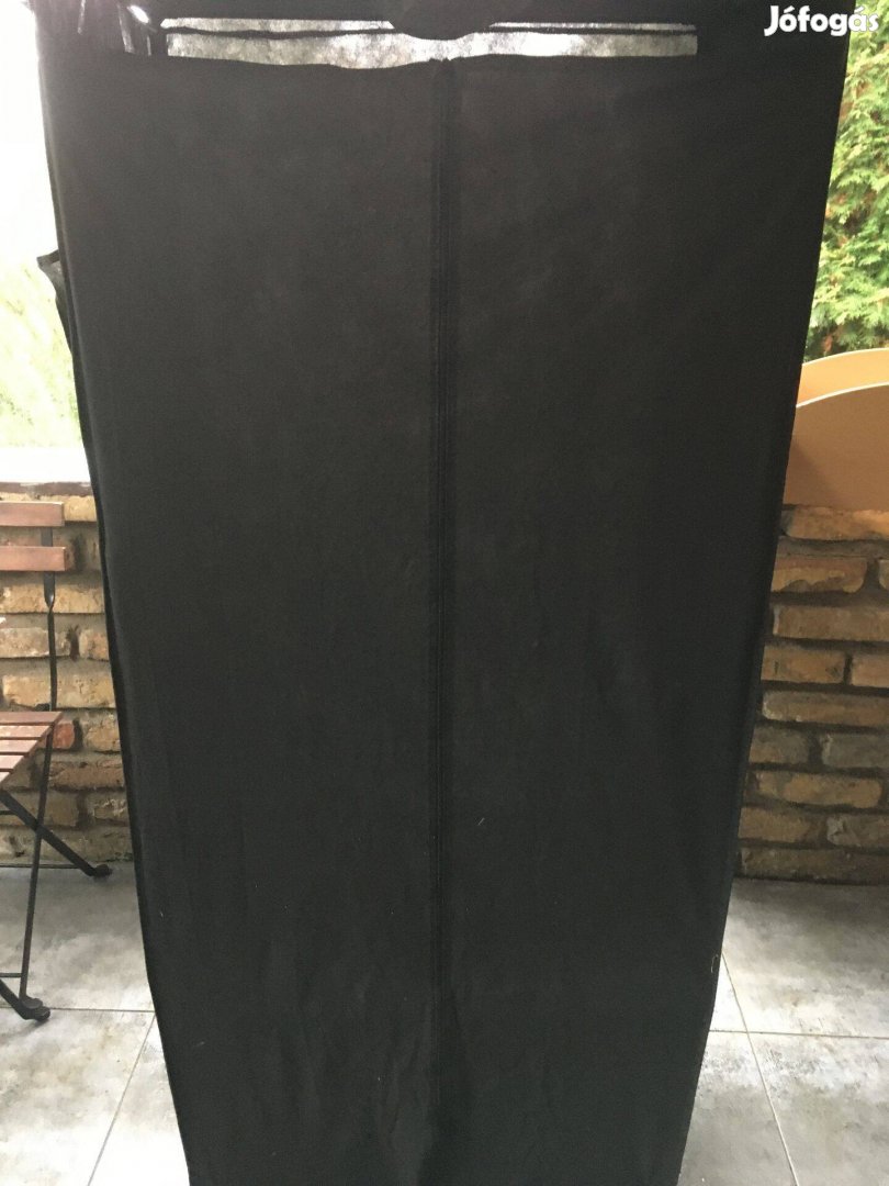 Szövet gardrób összecsukható szekrény .Sérült a sarkoknál, cipzár felső részén. Akasztós, polcos,