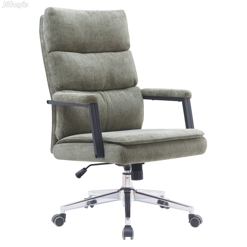 A szék magas minőségű szürkészöld szövet kárpitozással rendelkezik, amely stílusosan és elegánsan hat.