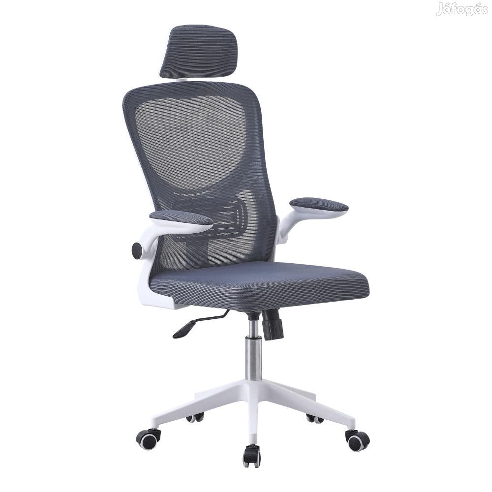 A szék szürke hálóval van kárpitozva, és fehér műanyag talapzattal van kiegészítve. Az univerzális kerekek alkalmasak puha és kemény padlóra egyaránt. Egy szék, amely fokozza a kényelmet és segít a hatékony munkavégzésben.