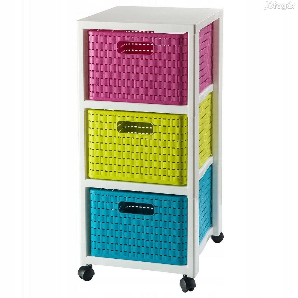 Ez a rattan hatású háromszintes komód kitűnő tárolási lehetőségeket nyújt.