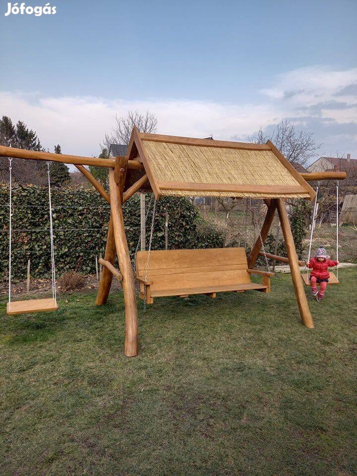 Hintaágy sátor vagy lapos tetővel ami lehet nád vagy lambéria vagy zsindely tetös. Akác oszlopból készült hintaállvány tölgy lapokból készült hintapaddal.