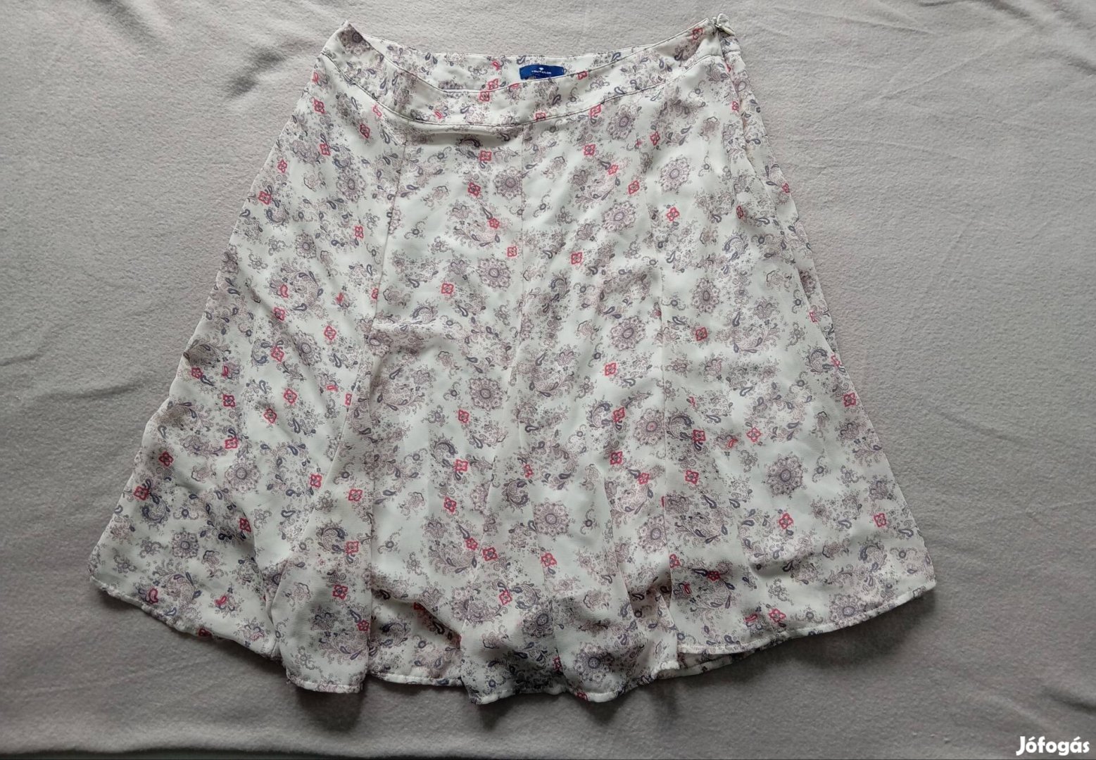 Eladó egy könnyed, tavaszi/nyári Tom Tailor szoknya. Fehér alapon mintával. Nőies, A-vonalú szabása van, oldalt rejtett cipzárral záródik. Az anyaga lágy esésű, nagyon kényelmes viselet. Dupla rétegű, az alsó szoknyával.