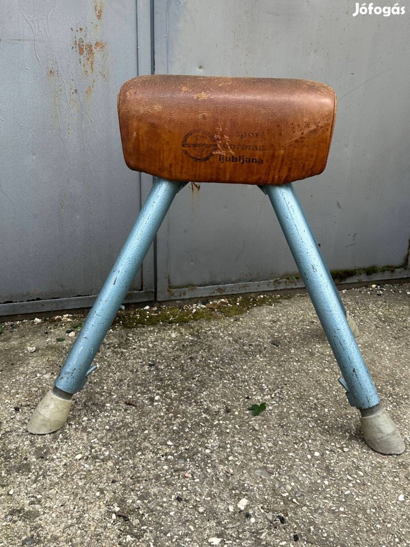 Tornabak egy régi tornateremből,Ljubjana felirat található a test oldalán, Szlovéniából származó, szép állapotú régi darab,a lábai teleszkóposak ,így állítható a magassága.