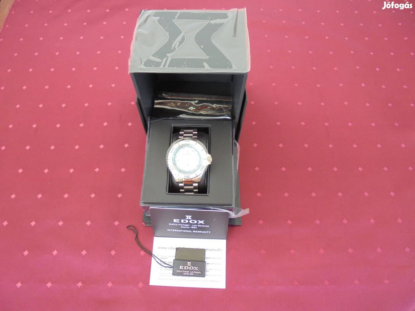 Új Edox Neptunian Grand Réserve 42 mm -es tok Edox Caliber 808, járástartalék 68h, 28.800 BPH (4Hz), 24 köves. Zafir üveg 300 m vizáloság Luneta egyirányúan forgatható, Superluminova Mutatók és indexek,acél szíj Full szett ( doboz ,garancia kártya, fóliás )