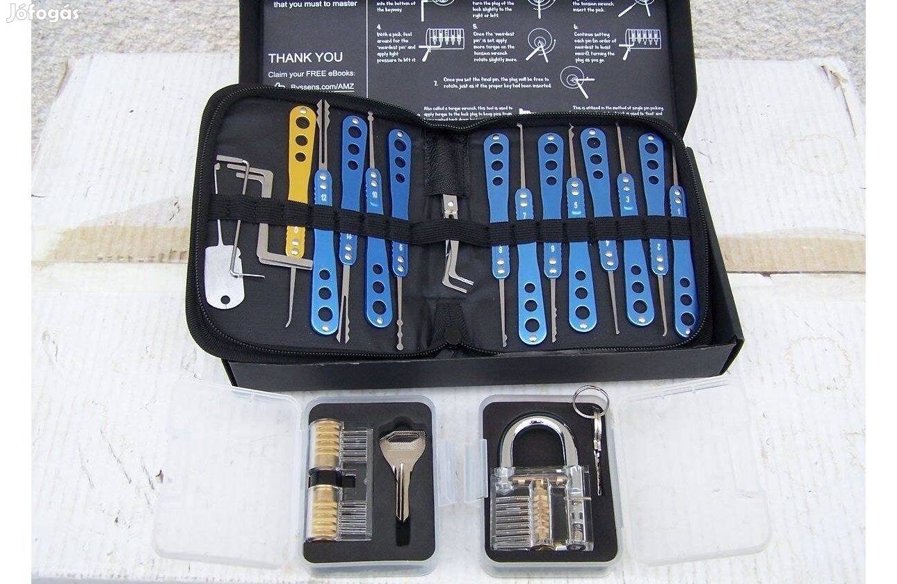 Zárfeltörő készlet, professzionális eszközök átlátszó gyakorlózárakkal. Ez a professzionális minőségű zárfeltörő készlet minden szintű felhasználó igényeit kielégíti.