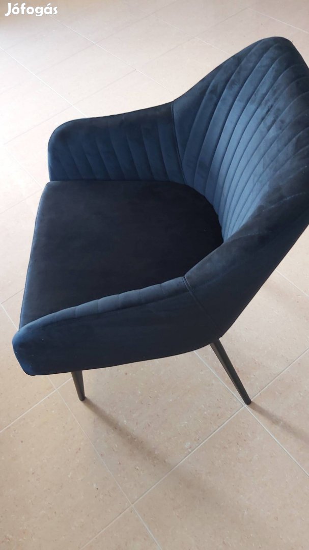 Új fekete bársony fémvázas étkezőszék, fekete fém lábszerkezettel, eredeti dobozában, kettesével csomagoltan eladók.