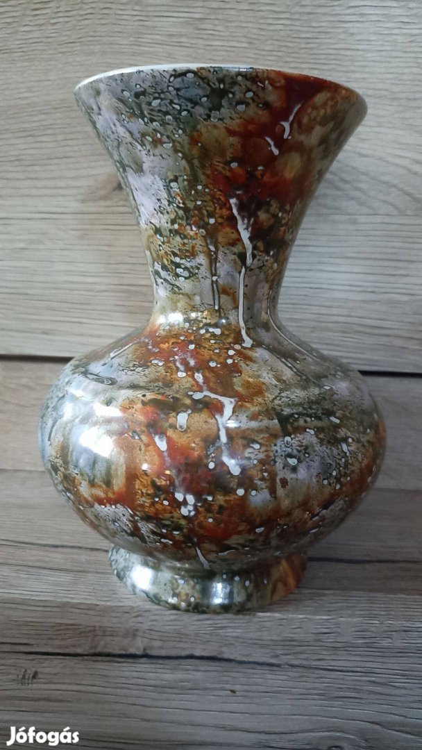 Vajda kerámia - folyatott márvány mintás kézzel festett váza - 17 cm magas