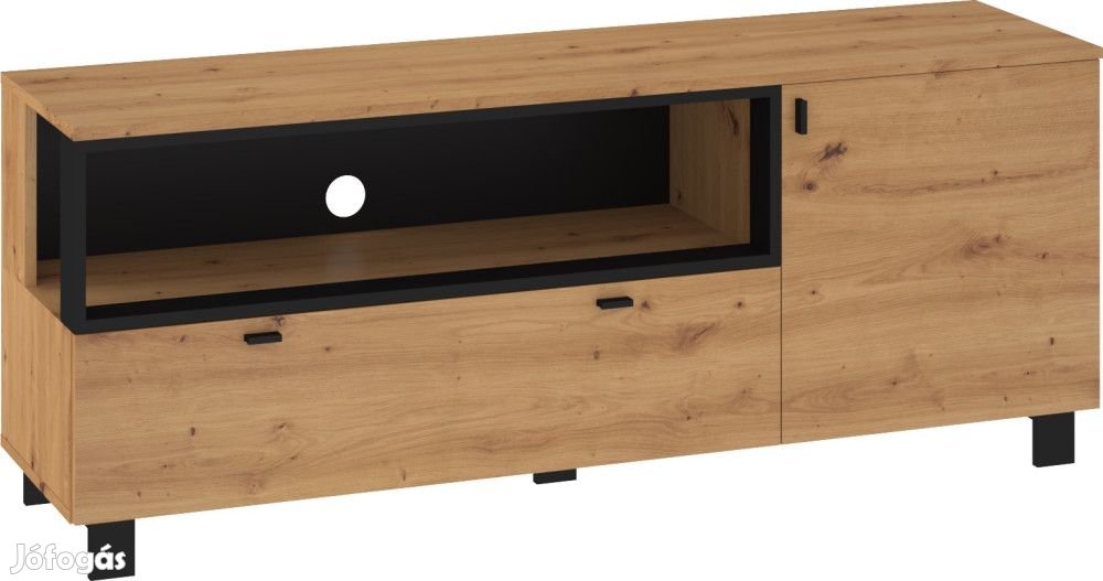 TV-állvány 1 normál ajtóval, alul 1 lenyíló ajtóval és nyitott polccal, artisan tölgy és fekete színben. További információkért kattintson ide: