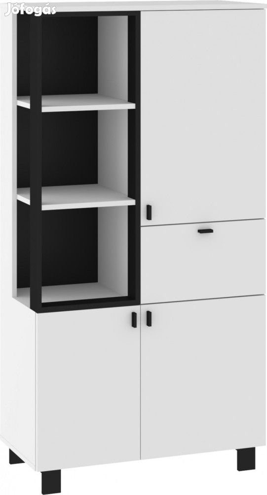 Könyvespolc 3 ajtóval, 1 fiókkal, az ajtók mögött polcokkal és nyitott polcokkal, fehér és fekete színben. További információkért kattintson ide: