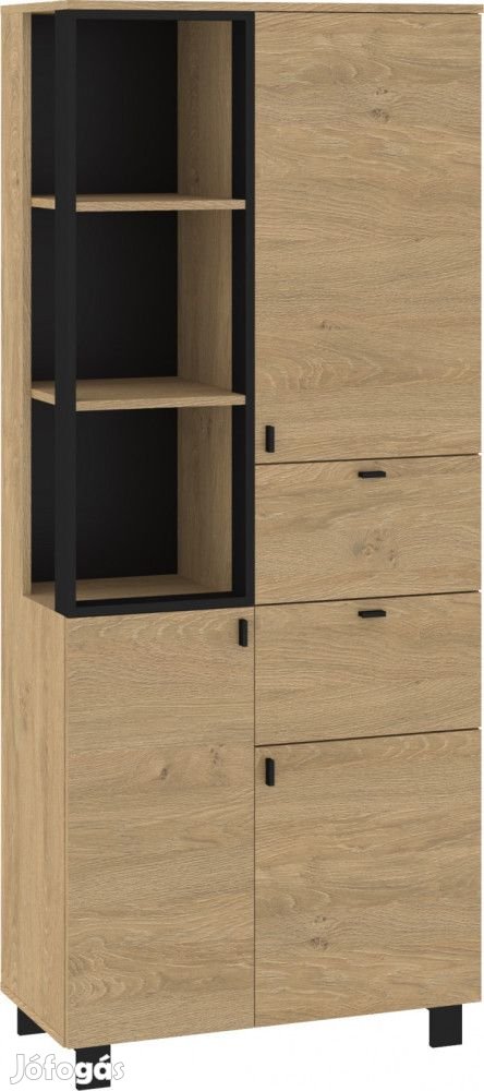 Könyvespolc 3 ajtóval, 2 fiókkal, az ajtók mögött polcokkal és nyitott polcokkal, stone tölgy és fekete színben. További információkért kattintson ide: