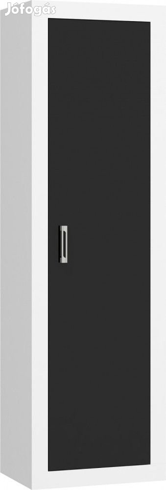 Gardróbszekrény 1 ajtóval, az ajtó mögött alul-felül 1-1 polccal és vállfatartóval, fehér és fényes fekete színben. További információkért kattintson ide: