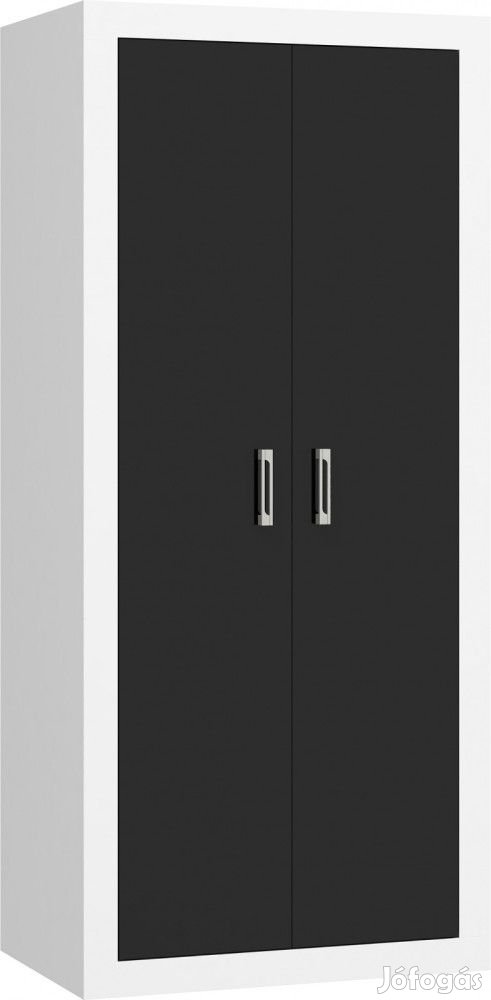 Gardróbszekrény 2 ajtóval, az ajtók mögött alul-felül 1-1 polccal és vállfatartó rúddal, fehér és fényes fekete színben. További információkért kattintson ide: