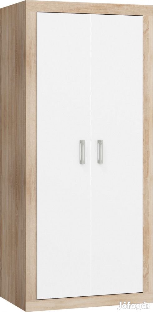 Gardróbszekrény 2 ajtóval, az ajtók mögött alul-felül 1-1 polccal és vállfatartó rúddal, világos sonoma tölgy és fényes fehér színben. További információkért kattintson ide: