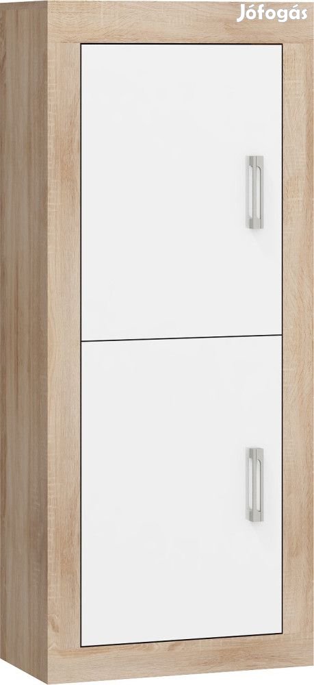 Könyvespolc 2 ajtóval, az ajtók mögött polcokkal és nyitott polcokkal, világos sonoma tölgy és fényes fehér színben. További információkért kattintson ide: