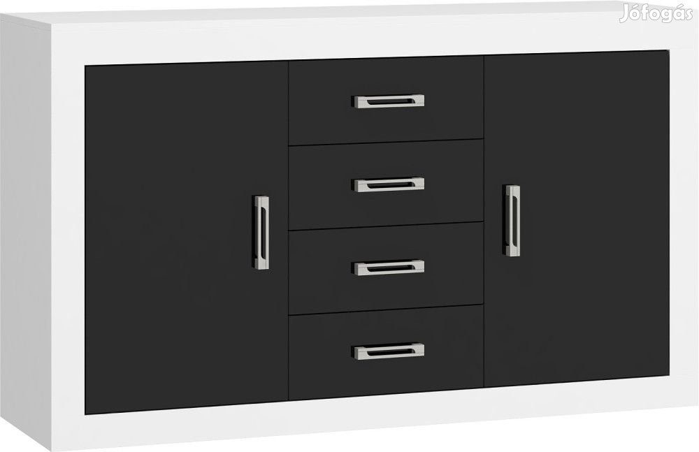 Komód 2 ajtóval, 4 fiókkal, az ajtók mögött polcokkal, fehér és fényes fekete színben. További információkért kattintson ide: