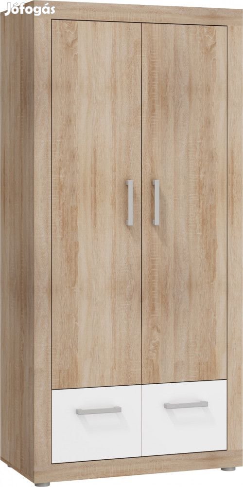 Gardróbszekrény felül 2 nagy ajtóval, polccal, és vállfatartó rúddal, alul 2 kicsi ajtóval, világos sonoma tölgy és fényes fehér színben. További információkért kattintson ide: