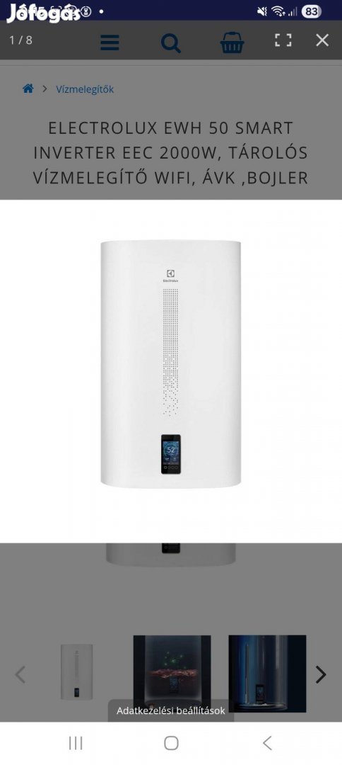 Electrolux Ewh 50 SMART Inverter EEC 2000W, tárolós vízmelegítő wifi, ávk ,bojler. Vadonatúj dobozban,! 1 éve vettem!