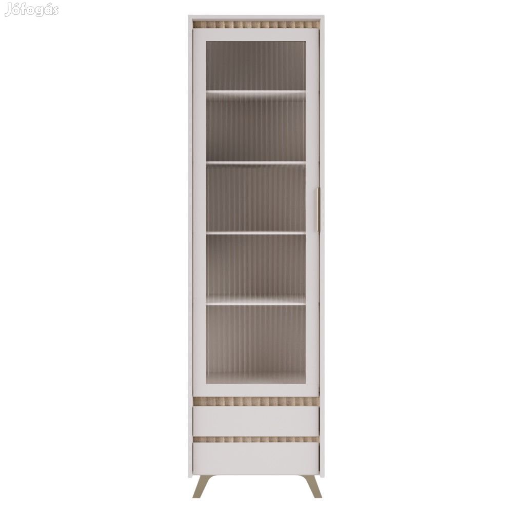 Anyag: laminált DTD/fóliázott MDF/PVC fólia/üvegSzín: kasmír/sonoma tölgyMéretek (SzxMéxMa): 62x45x212 cmAnyagvastagság: 1,6-1,9 cmEgyajtósAjtók üveggelÜveg vastagsága: 0,4 cmCsiszolt üvegEdzett üvegBordázott üvegÁtlátszó üvegPolcosKét fiókFogantyúvalFogantyúk anyaga: fémLábakonLábak színe: természetesLábak magassága: 12 cmTeljesen kihúzható golyós sínZsanérokÉl: hőre keményedő polimerekkel impregnált papír/PVCABS anyagvastagsága: 0,5 mmA farostlemez vastagsága - hátlap/fiókok alja: 0,3 cmHátlap/fiókok aljának színe: fehérDekoratív marásModern dizájnSzétszerelve szállítva További információkért kattintson ide: