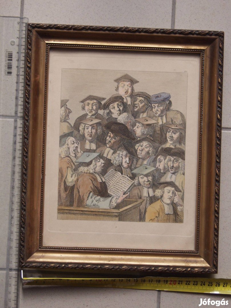 Eladó a képen látható szép állapotú, William Hogart (1694-1764) rézmetszetének 1900 körüli levonata, színezett.