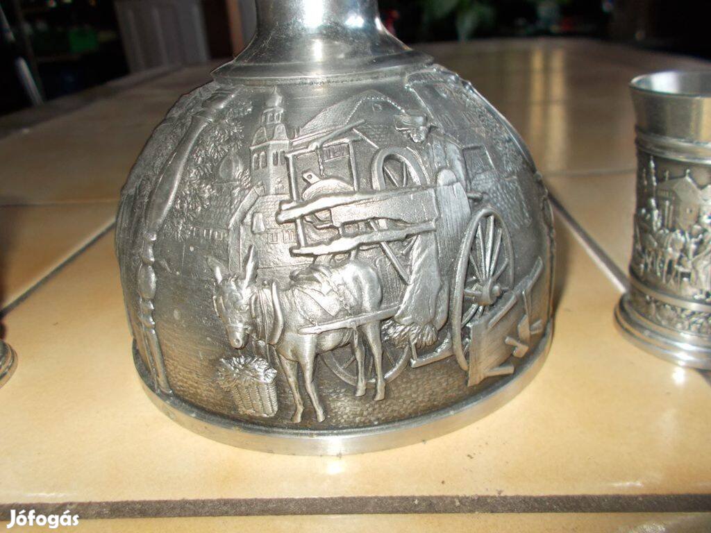 Zinn italos készlet, italtartó poharakkal.