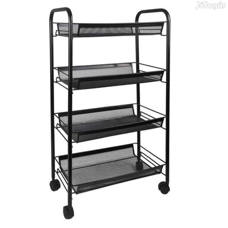 Erről a tálalókocsiról beszélünk. Fémből készült, elegáns fekete színkivitelben.