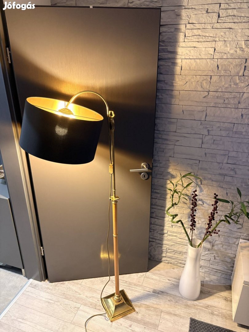 ? Mid-Century Jelzett (1011) Sárgaréz-Fa Luxus Állólámpa