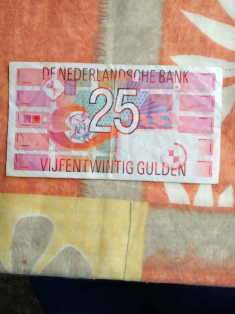 Eladó Holland papír pénz 25 Gulden 1989