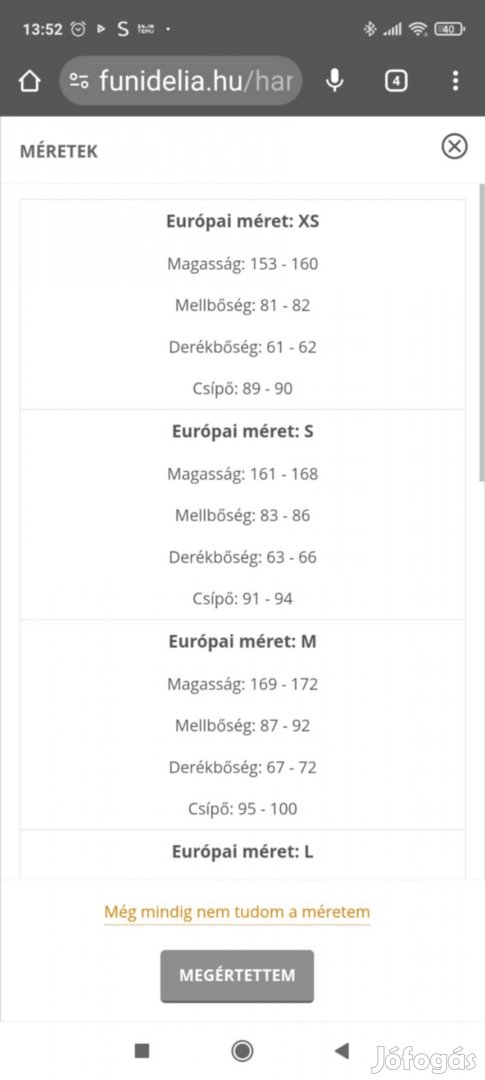 A képek között található a mérettáblázat.