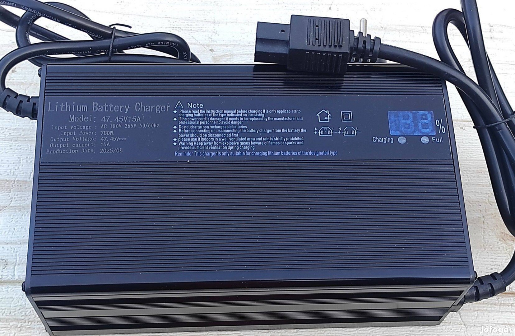 15A, 47.45V, 780W 13S Lifepo4 akkutöltő, töltöttségi szint kijelzővel.
