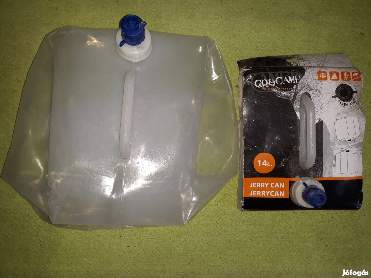 Összehajtható műanyag kannák. 1.4 literesek. Kempingezésre, vízhordáshoz vagy másra. A kettő együtt 2900 Ft.