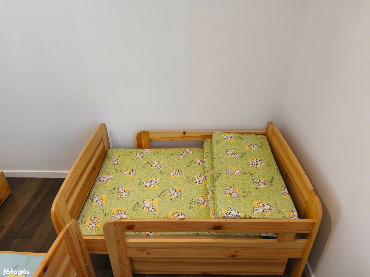 Eladóvá vált 2 db natúr fenyőből készült állítható hosszúságú gyermekágy. Az ágyak hossza 100 cm-től egészen 180cm-ig tetszés szerint állítható. Szélesség 80cm-es fekvőfelület. Anyaga masszív természetes tömör fenyő leesésgátlóval ellátott kivitelezésű. Az ágyak alatt praktikus ágyneműtartó található. A képeken látható mintás, többrészes szivacsmatracok a különböző hosszúságokhoz igazíthatók. Megkímélt szép állapotban vannak, azonnal használtba vehetőek. Szállításban nem tudok segíteni.