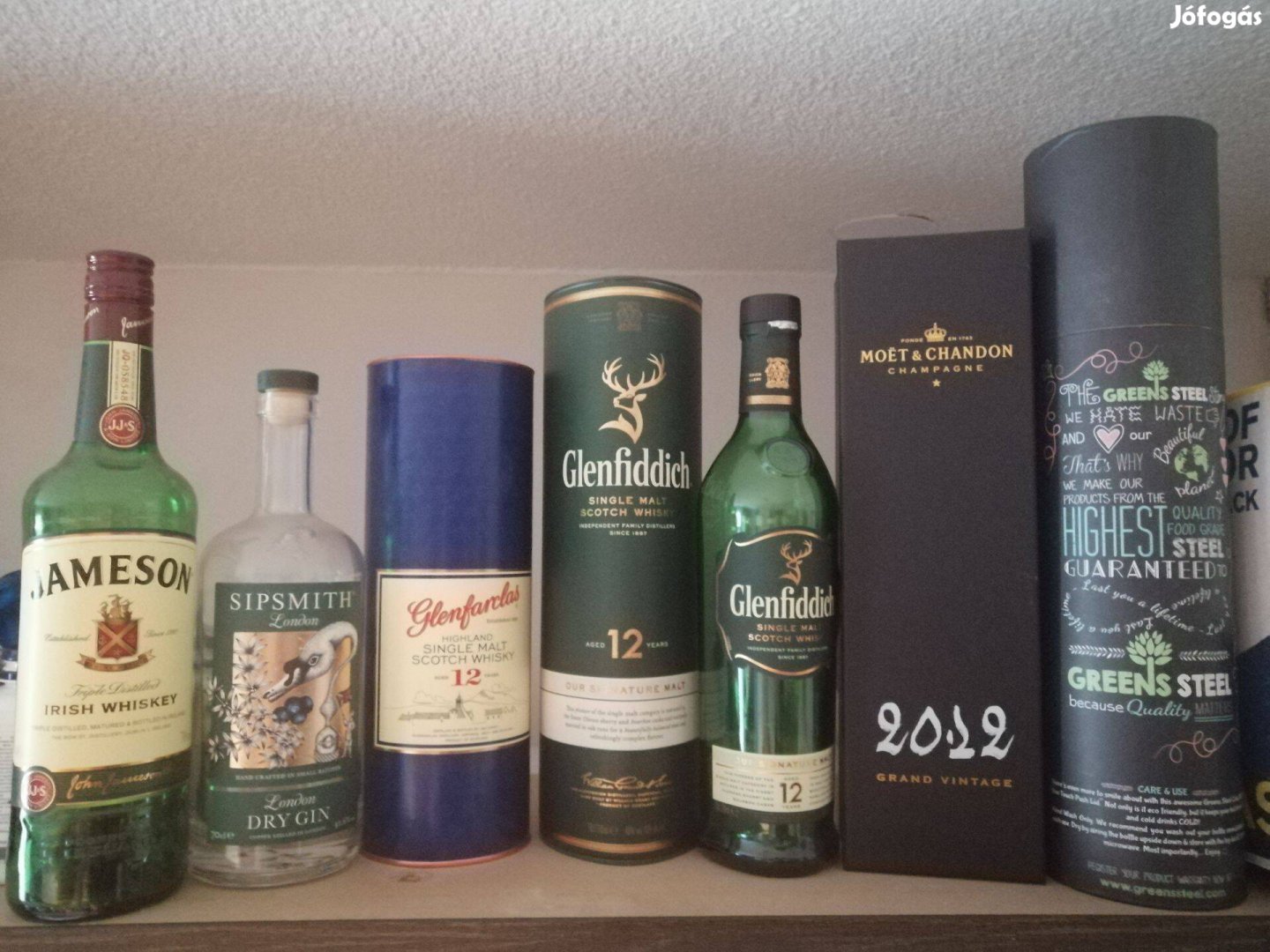 3 üveg italos palack +6 díszdoboz hibátlan állapot,külön is!szett ár!