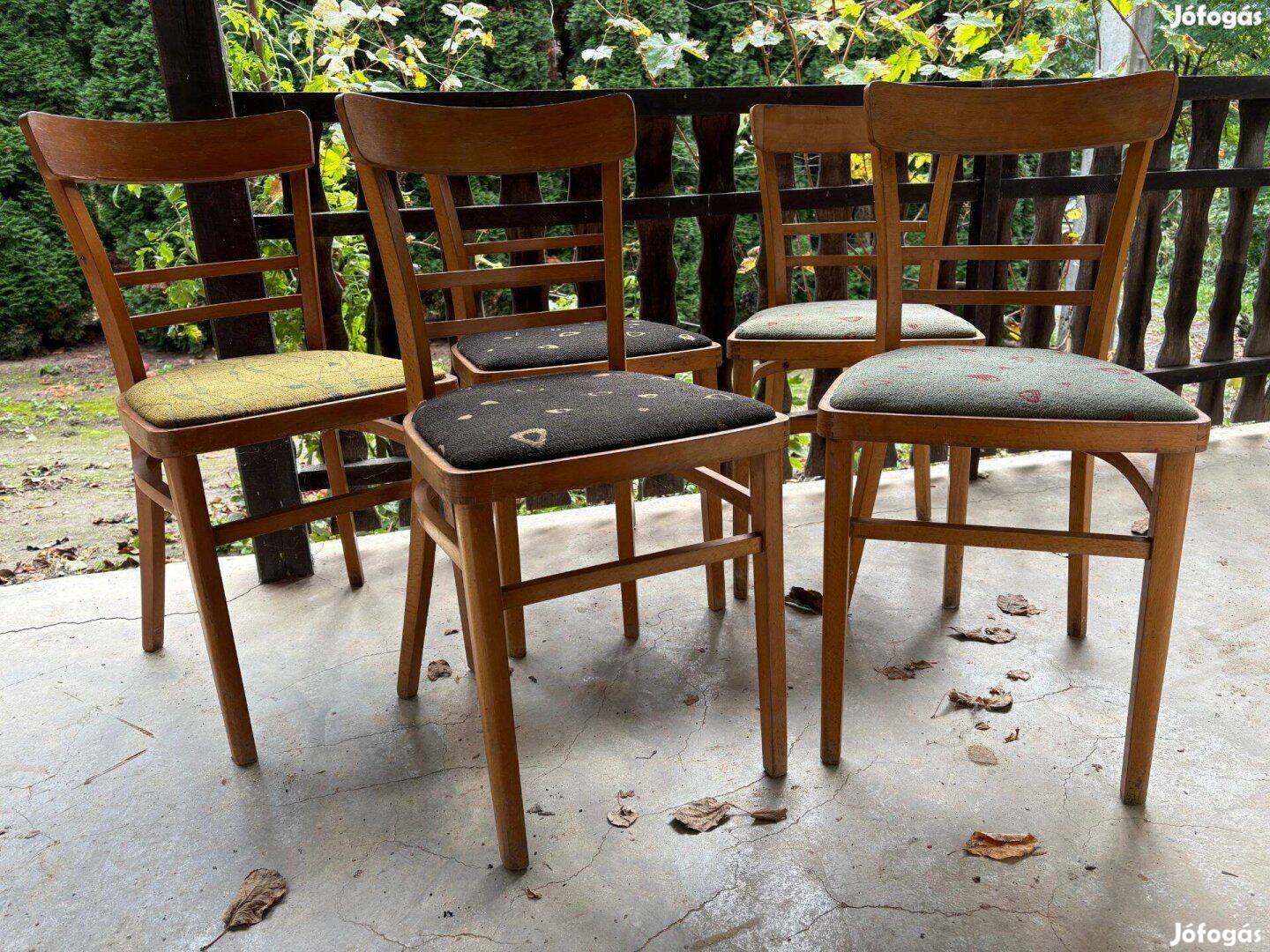Eladó jelképes 5000 Ft-ért 5 db kárpitozott szék. Stabilak, de a kárpitot érdemes tisztítani.