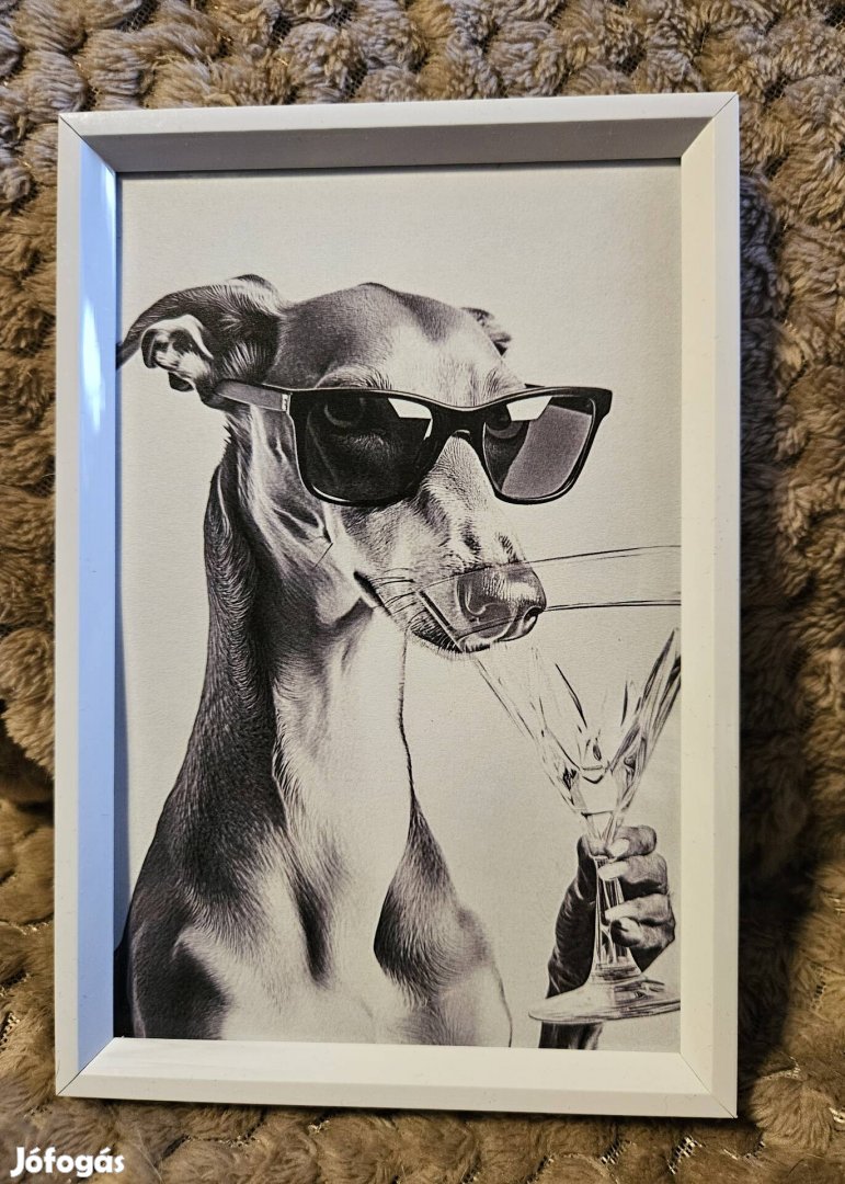 10x15-ös dekor kép kerettel. Whippet napszemüvegben, koktélos pohárral