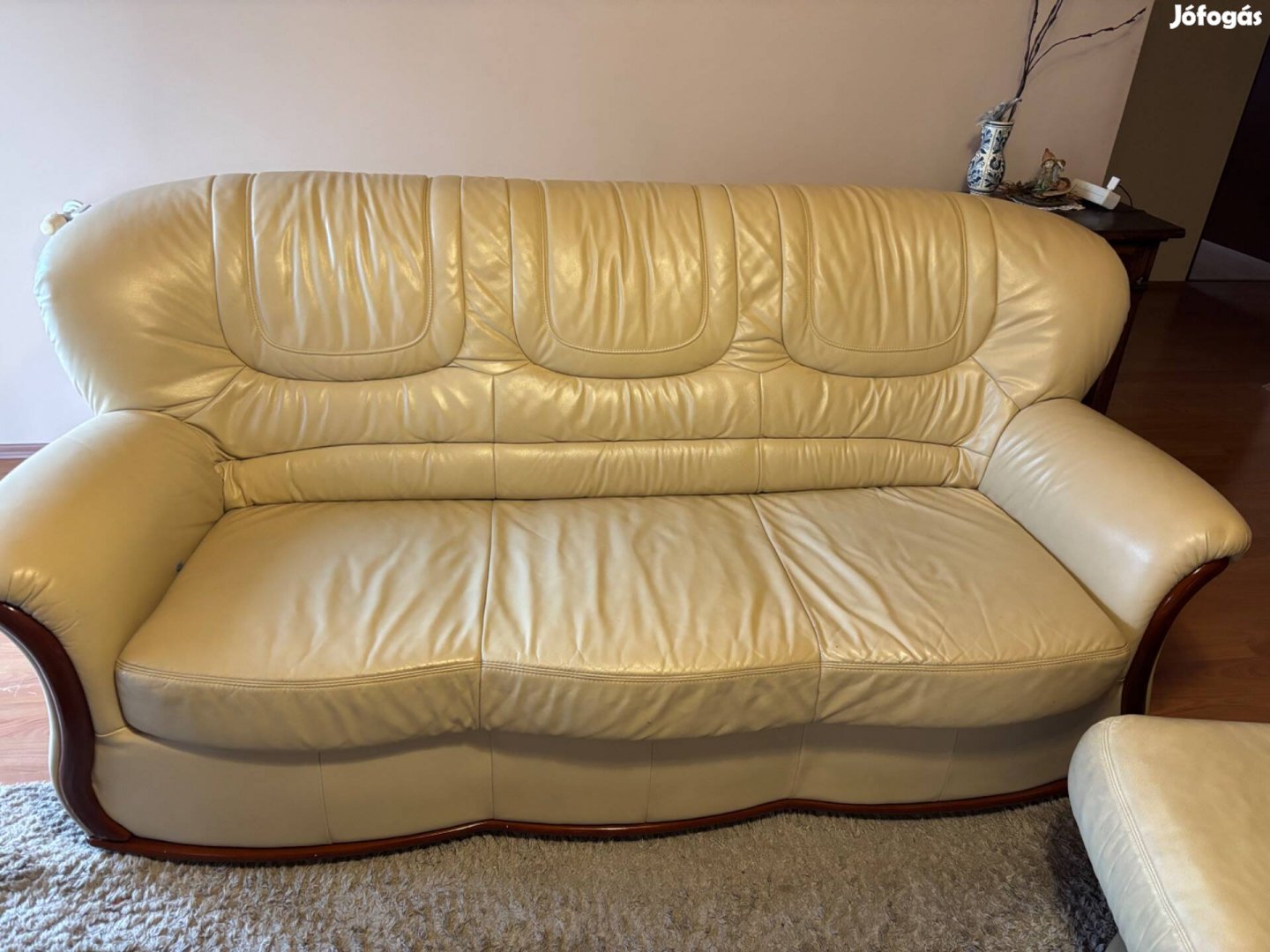 Használt, jó állapotban lévő 11 éves Andante natúr, bézs színű 3 részes bőr garnitúra költözés és helyhiány miatt, Nagykanizsától 10 km-re lévő településen eladó. A garnitúra 1 db fotel, 1 db 2 üléses kanapé és 1 db kihúzható franciaággyá alakítható 3 üléses kanapéból áll. Irányár: 399 000 Ft. A képen látható bőr lábtartó nem része a szettnek, külön lett hozzá vásárolva, de megegyezés szerint elvihető.