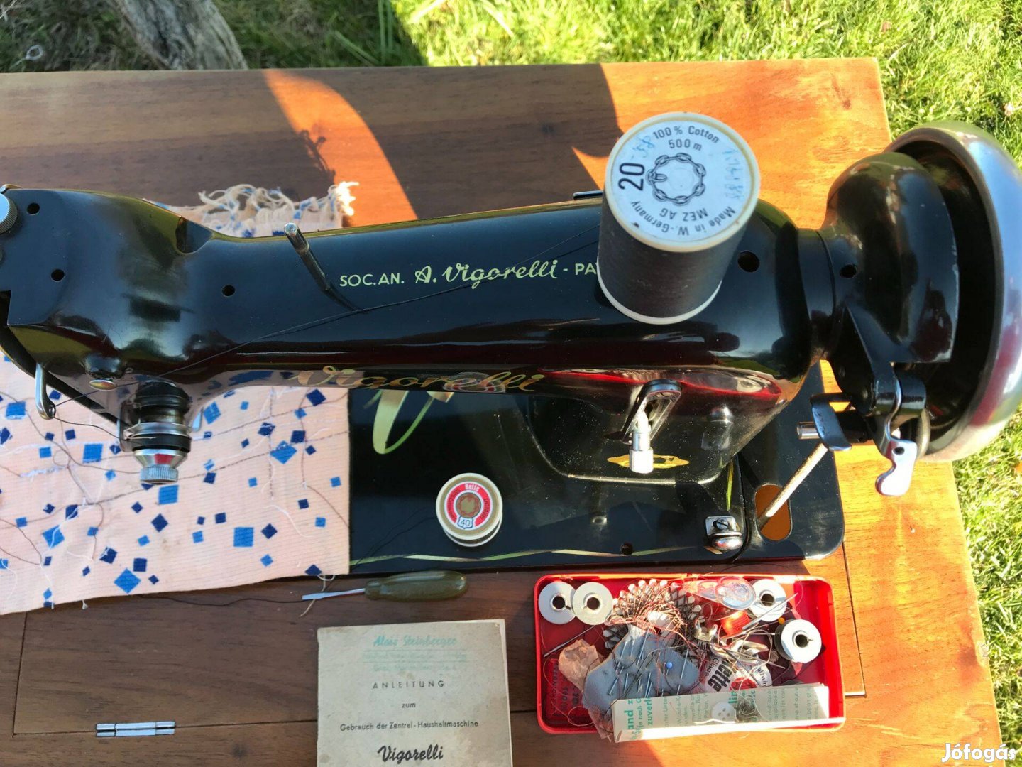Vigorelli, Olasz varrógép, szekrénnyel! Nagyon ritka, főleg ebben az állapotban! A gép teljesen működőképes, összecsukható, hozzá jár eredeti gépkönyv, orsók, és egyebek(még csavarhúzó felirattal is) A szekrény rendkívül stabil, kopás nyomokkal, melyek javíthatóak. Kérdésekre válaszolok, képeket küldök. Videót, a működéséröl szívesen köldök!