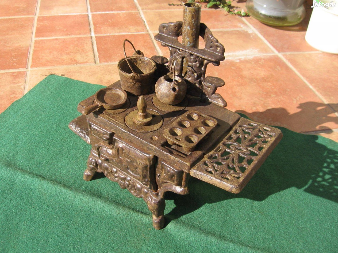 Antik, öntött vas gyerek játék kiegészítőkkel gyűjtőknek eladó!