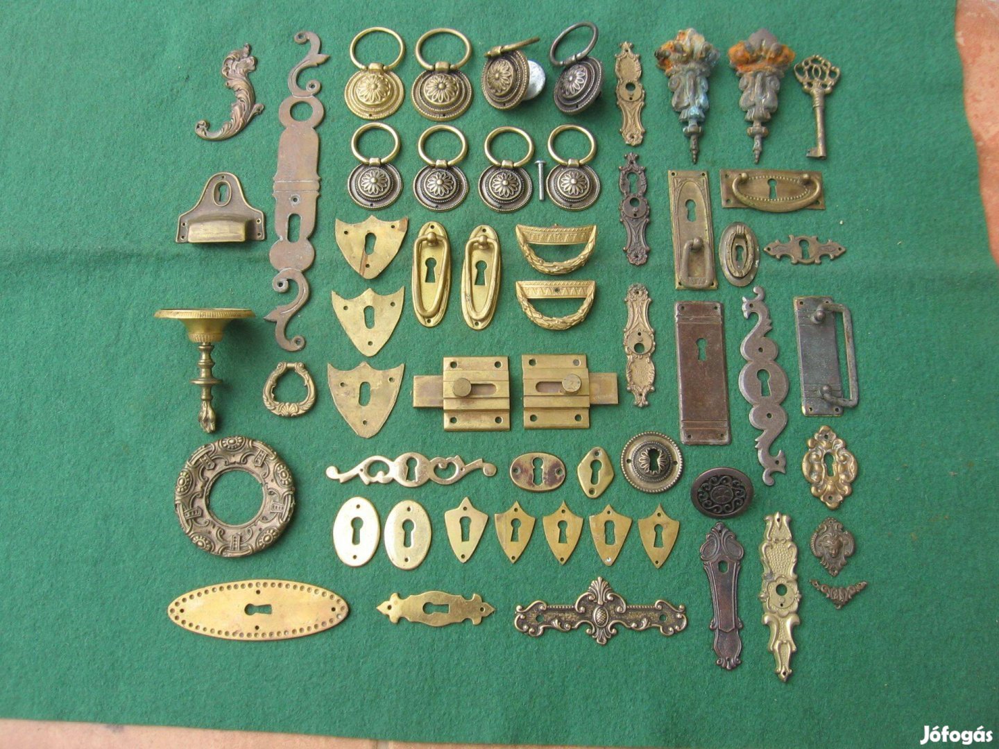 A megtalálás állapotában és összetételében lévő antik bútor veretek, több mint 50. db., egyben eladó restaurátoroknak, felújítóknak! Több komplett garnitúra is található benne, de a szóló darabok is hasznosak lehetnek!