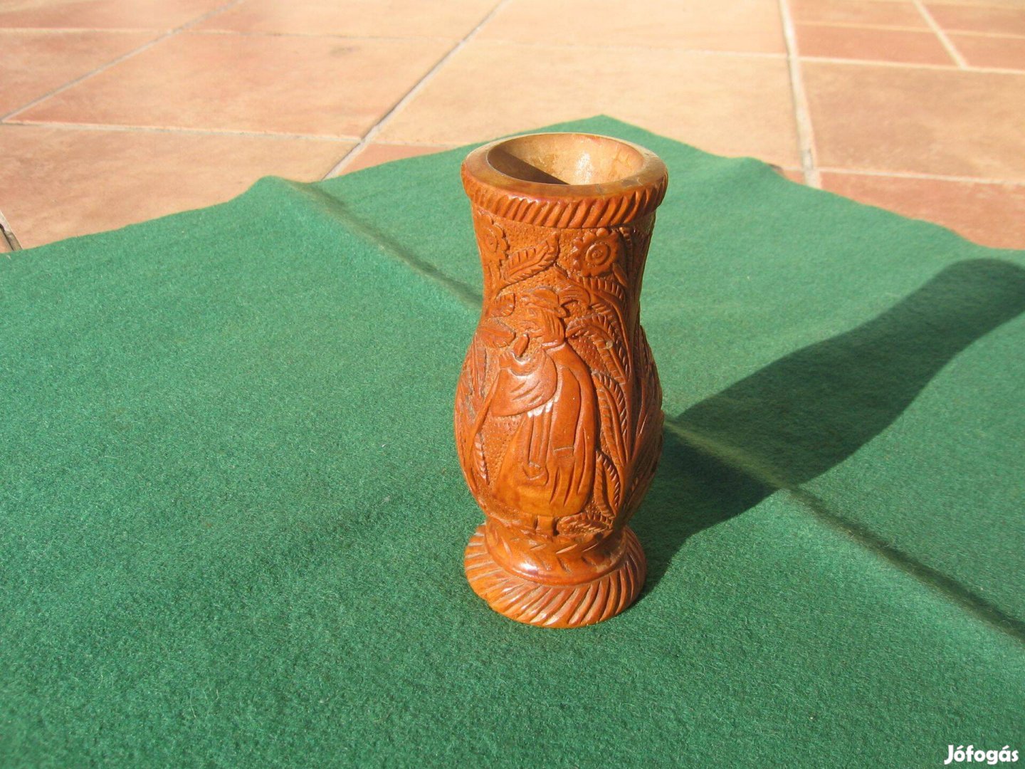 Az előkerülés hibátlan állapotában lévő antik kanász faragás igen szép kidolgozással, különleges darab! megpróbáltam körbe fotózni a vázát hogy látható legyen a kanász a kutyával és a kondája is, talán élvezhetők a fotók! Sajnos a készítő nem szignálta, pedig minden dicséretet megérdemelne, hisz igen aprólékos, igényes a kidolgozás. A talpon lévő női név gondolom a megajándékozottra vonatkozhat! Méretei: talp átmérője: 6,6 cm, mag.: 15,5 cm, súlya: 246 g. Gyűjteményes darab!